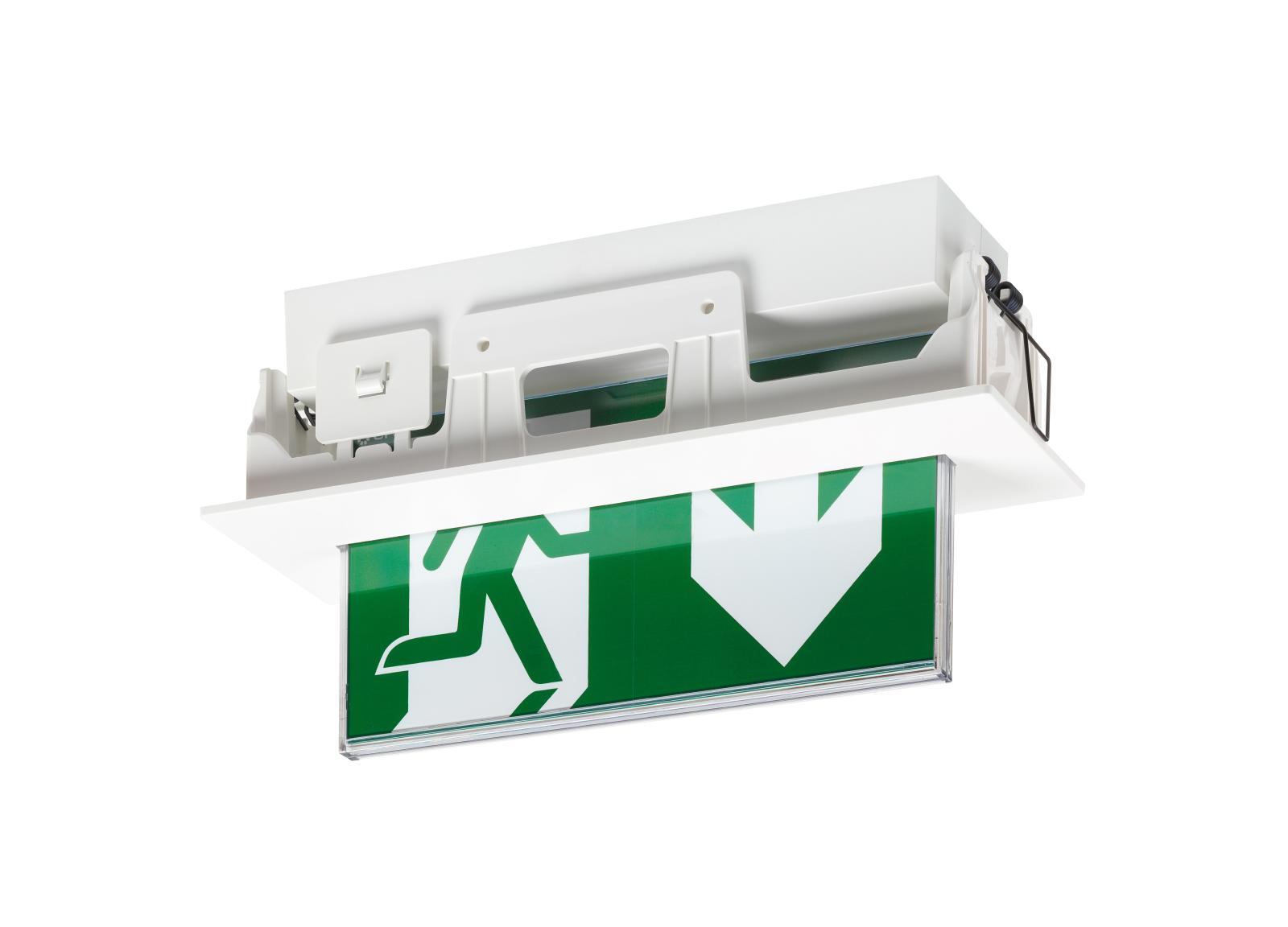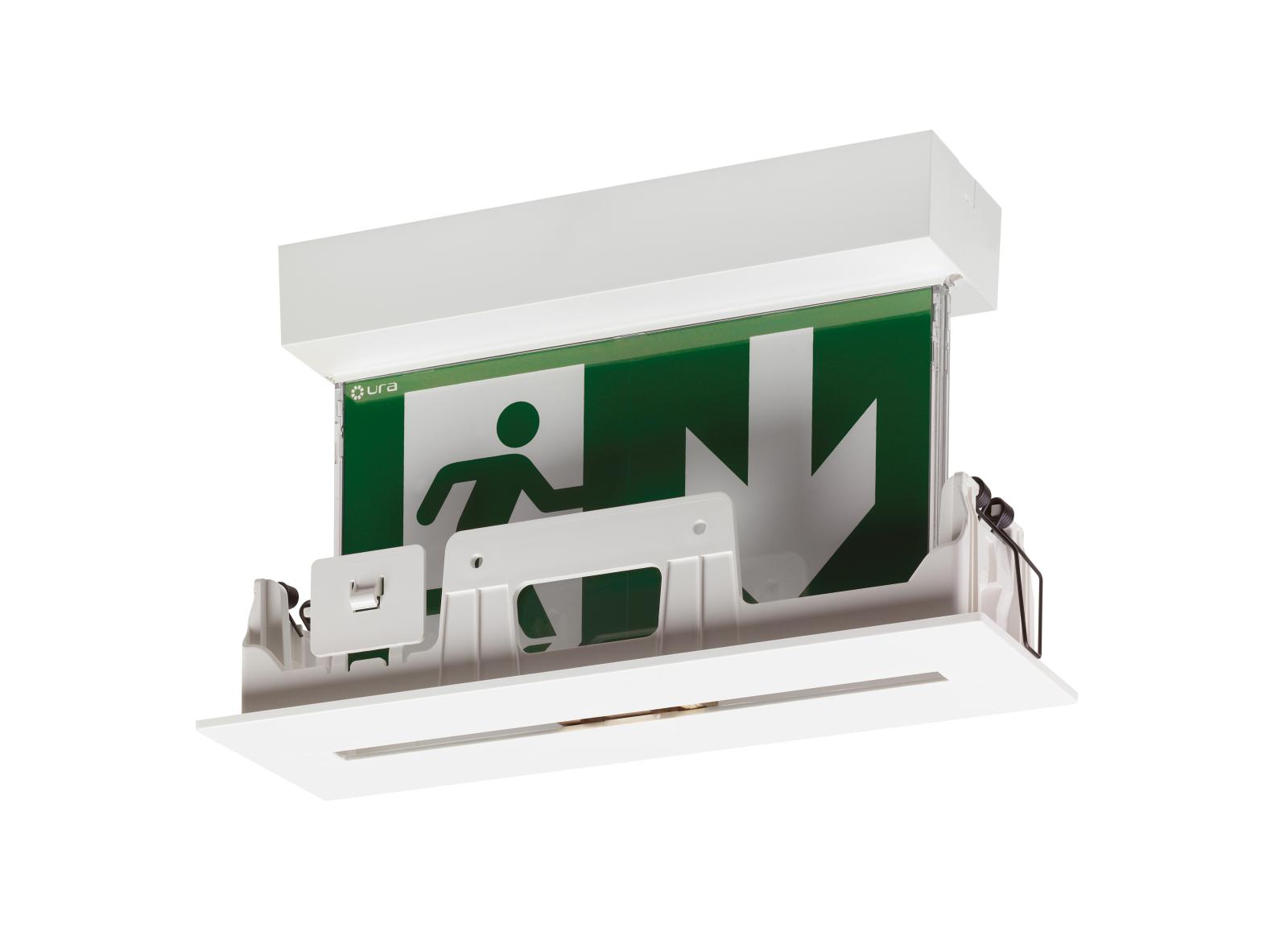 LSC Uralife V Évacuation 24VDC - 45lm - pose plafond encastrée/saillie - IP43/IK07 - éclairage uniforme du pictogramme
